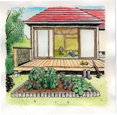 わが家では、狭い庭の一番日当りのいい一等地に、4坪ほどのささやかな畑を開墾している。「アウト道」などと大袈裟に銘打っているわりには、いきなり「家庭菜園」かよと思われる方がいらっしゃるかもしれないが、私は菜園づくりも立派なアウトドアだと思っている。初夏の風に吹かれながら、土の感触を手や足の指の間に感じながら汗を流す快感は、まぎれもなく自然との接点を楽しむアウトドアのそれである。