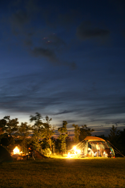 たどり着いたのは、緑の芝が美しく、真っ平らな平地が広がる公園みたいなキャンプ場だった。水道、水洗トイレ、シャワー完備である。しかも、当日はほぼ満員状態。普段、なるべく人がいないところを目指して、水もトイレもないところでばかりキャンプをしている身には、どうにも落ち着かない場所だ。それでも、かわいい弟家族のためにドーム型テント、炊事用のヘキサ型タープ、虫が嫌いだという子ども用のスクリーンタープを張りまくった。隣では、説明書を片手に真新しいテントを組み立てているお父さんがいる。その設営スピードの差に少し優越感を感じながら、テーブルを組み立て、椅子を並べ、2バーナーストーブをキッチンテーブルに置いた頃には、ヘトヘトになっていた。直火禁止なのでかまども作れず、焚き火もおあずけだ。「何のためのキャンプなんだ」とぼやきつつも、弟家族をアウトドアの世界へ引きづり込もうという企みの陰で、「何事も最初が肝心。第一印象がその後ののめり込み度を大きく左右するんだ」と自分に言い聞かせる。