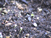 それが、3日目の朝、初めて緑色の小さな小さな二葉を発見!! ブロッコリーと小かぶの2つの芽だ。