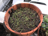 そして、4日、5日が経つうち、ゾロゾロと芽がでてきた。プランターの方の小かぶなんて、苔みたい。ひと袋にあまりにたくさんの種が入っていたため、欲張ってばらまきすぎた結果