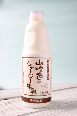 安全性と甘さにこだわった自家栽培の牧草をふんだんに与え、牛の健康管理を第一に考えた結果、一年間を通して高い乳成分を実現しました(年平均5%以上の乳脂肪分)。低温殺菌(65℃ 30分)、ノンホモゲナイズド製法の限定生産。筑後川の源流、阿蘇・黒川温泉から発信する「むかしなつかしい味」の牛乳です。